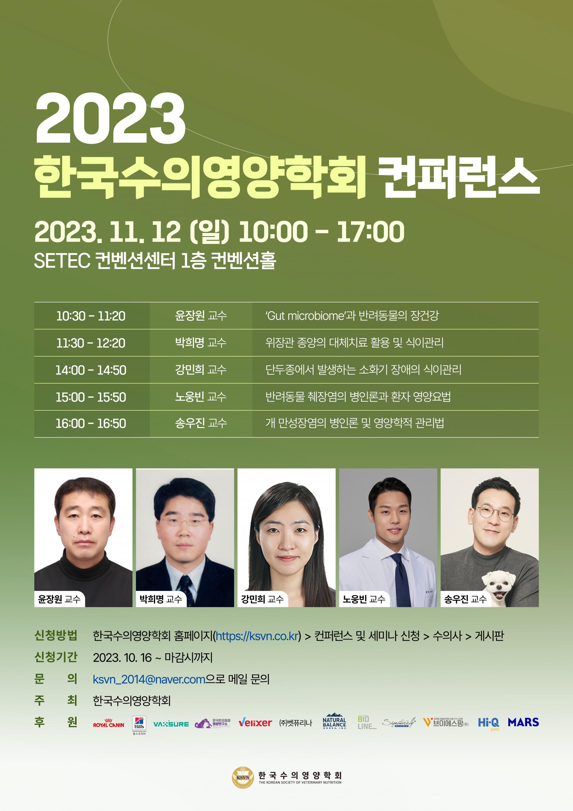 2023년도 한국수의영양학회 컨퍼런스를 개최하게 되었습니다.